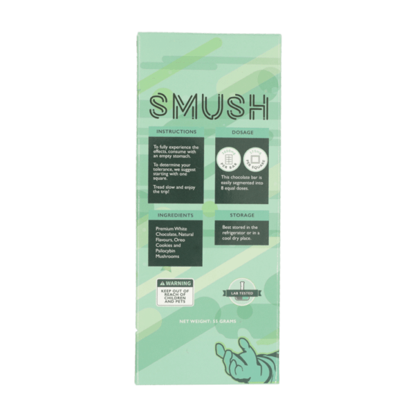 SMUSH chocolate bars come in lab precise dose segments to help you reach your desired trip experience level. One segment will be adequate for a micro-dose and five for full blown trip experience into SMUSH multiverse.